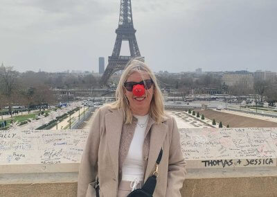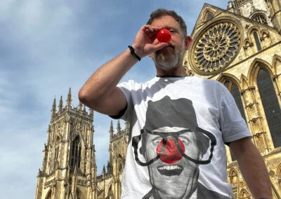 Seven years later I contracted Bowel cancer and then again in 2023 and for a third time in January 2025. Thanks to the amazing team at Nuffield Healthcare Brighton, I am still here and fighting this horrendous disease. I am fortunate enough to be able to have a new treatment – immunotherapy. I started my first treatment on 14th March 2025 and spent 5 nights at the Princess Royal Hospital A&E Disco Club and 5 days at Same Day Care centre. My body was not happy with the immunotherapy! Then I rallied and was told by a great friend Neil Tomlinson of Aquapax fame that he had spent so many years celebrating Red Nose Day with me that I had to sort myself out! How could I disobey that directive!
